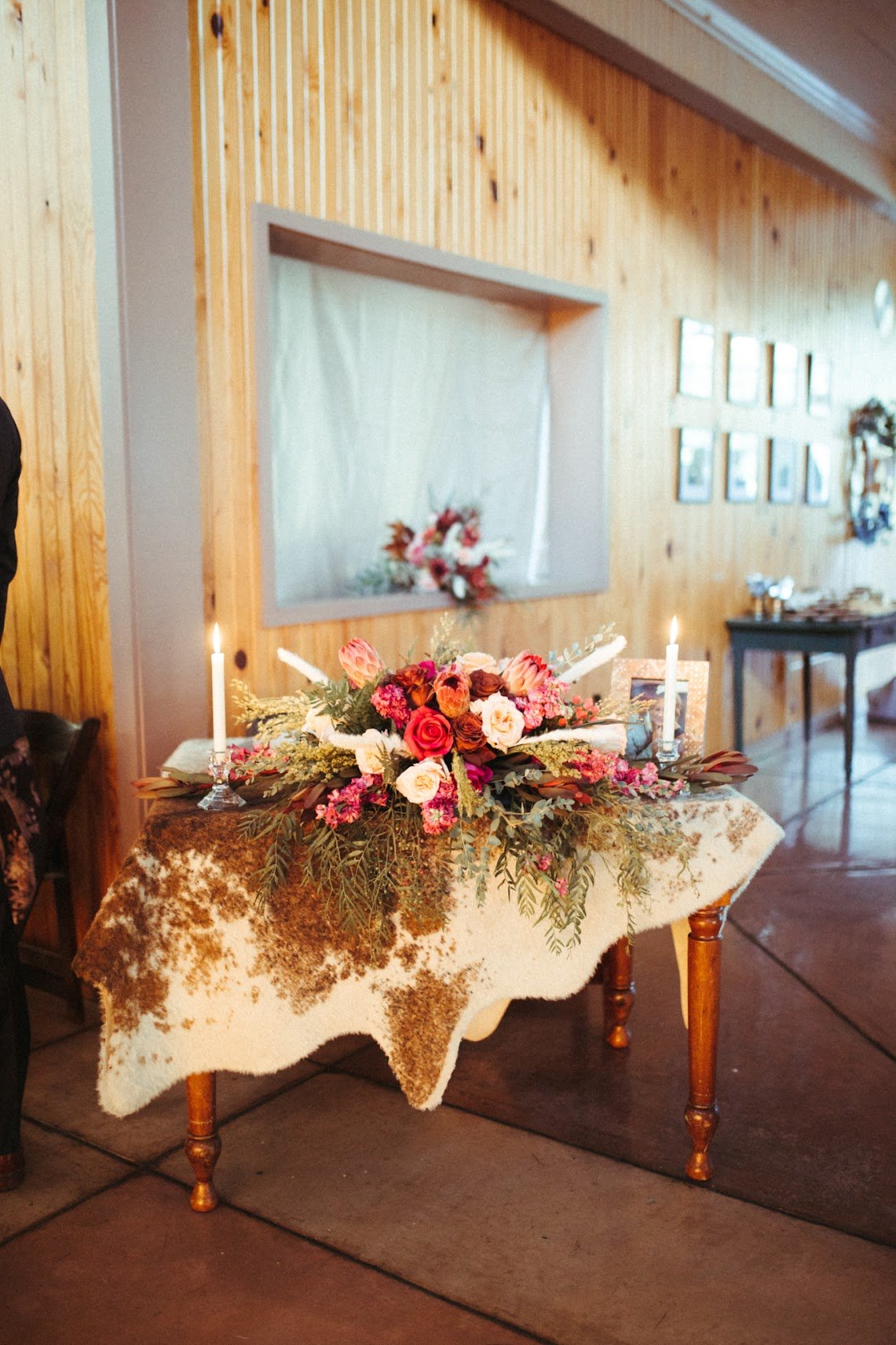 The florals complimented the beauty of the venue, Haynes Haven, perfectly. The pops of coral and amber accented the white home with black shutters perfectly. The pampas grass added the perfect touch of western flare.