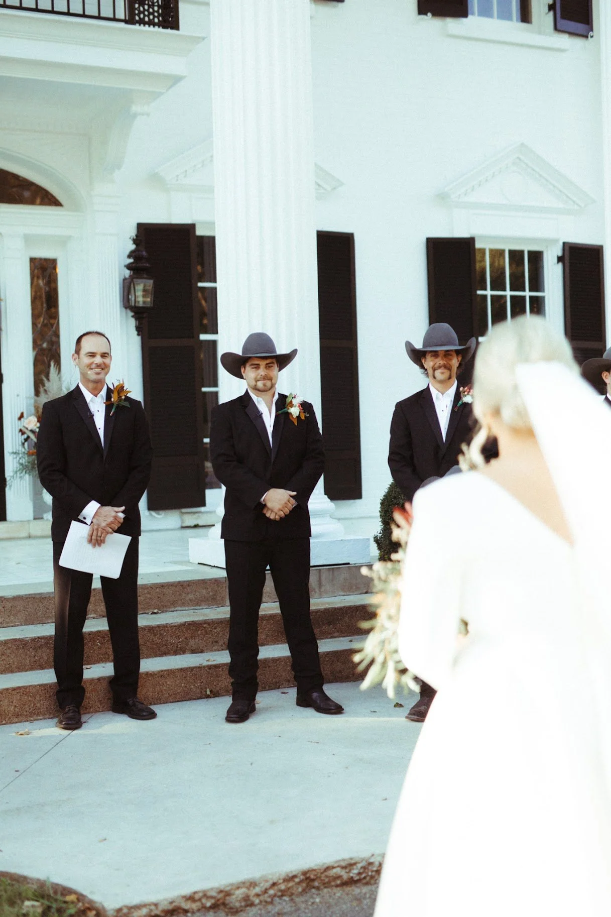 The groom and groomsmen took a later arrival to the venue and brought their own delicious spread of goodies!! The groom’s suite was the perfect setup for these guys as they were laid back and enjoyed the evening. Now once the Tennessee v. Alabama started, these boys were glued to the TV or cell phone in between photos.