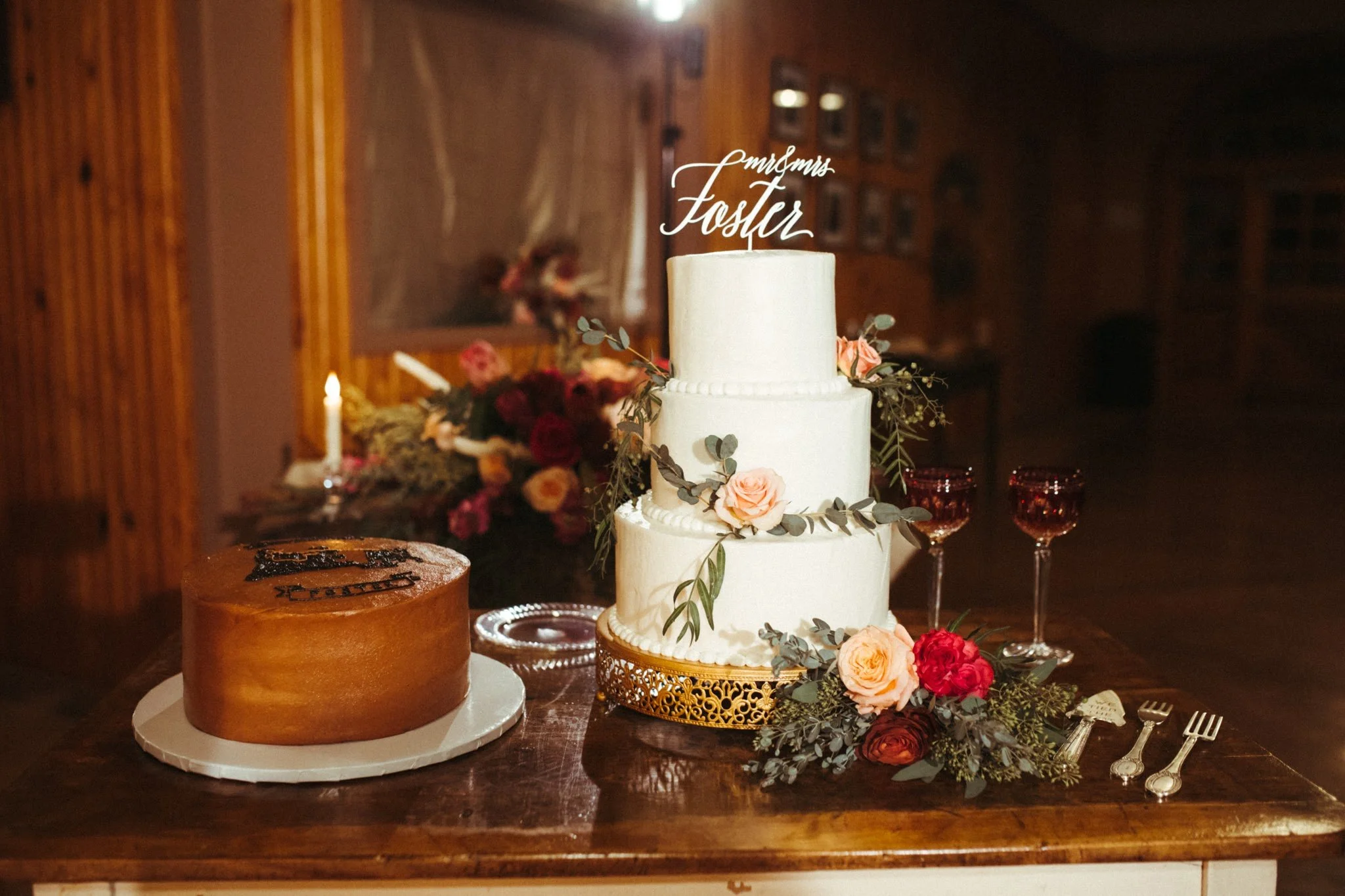 Sentimental touches could be seen everywhere, from the wedding and groom’s cakes made by the mother of the bride to the custom F O S T E R spelled out on the dance floor.